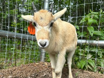 Meet Oddie the Scimitar Oryx, a bottle-fed wonder ready for his forever home! Experience the joy of welcoming this majestic creature into your life!