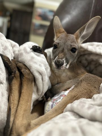 Meet Regina, the charming Red Kangaroo in search of her forever pouch! With a sweet disposition, she adores her bottle, relishes playtime, and delights in giving kisses. Bring home this affectionate companion today!